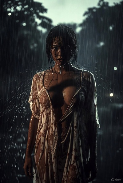 ผมเปิดประตูเห็นพี่น้ำยืนตัวเปียกฝนทั้งตัว เสื้อกล้ามสีขาวบาง ๆ เปียกจนเห็นหัวนมชมพูชัดเจน กางเกงขาสั้นรัดหีโหนกจนเห็นร่องแคมลึก ๆ ผมกลืนน้ำลายดังเอื๊อก